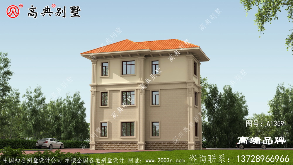在农村修建的独栋别墅不用多奢华、多壮阔、多雅致,像下边这款空气美观大方又有特点的简欧风格三层别墅,才算是合适村里人修建的房屋。