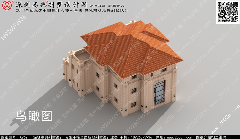 欧式三层别墅设计图纸首层234平方米三层别墅图纸下载